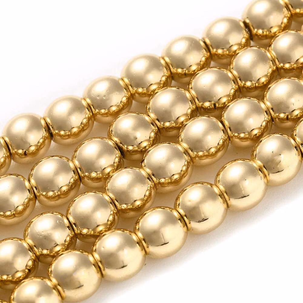 Ljust guldfärgad hematit runda 6 mm, 1 sträng