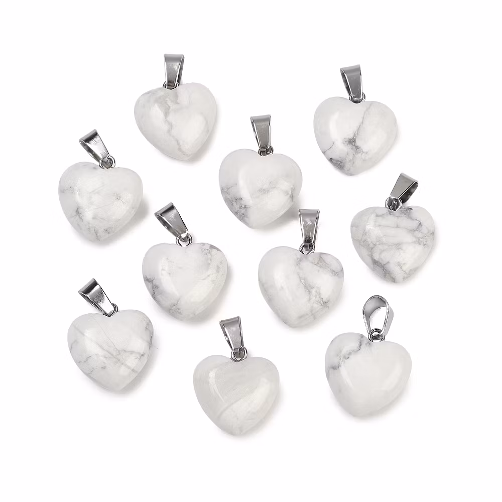 Antikfärgat hänge hjärta howlite vit, 1 st