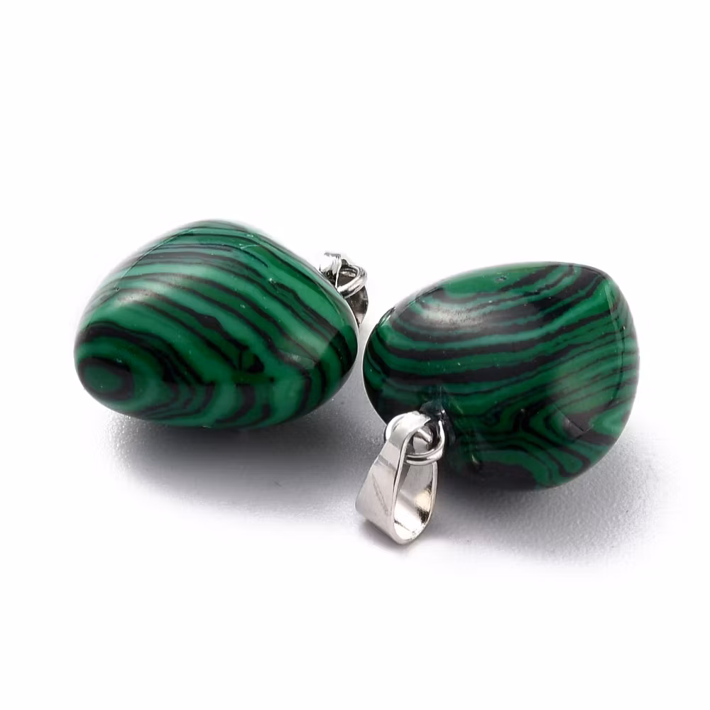Hänge i nickelfri metall och syntetisk halvädelsten. Mått: 18x15~15.5x9.5~10mm.
