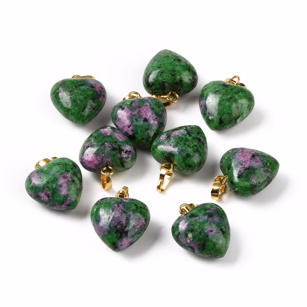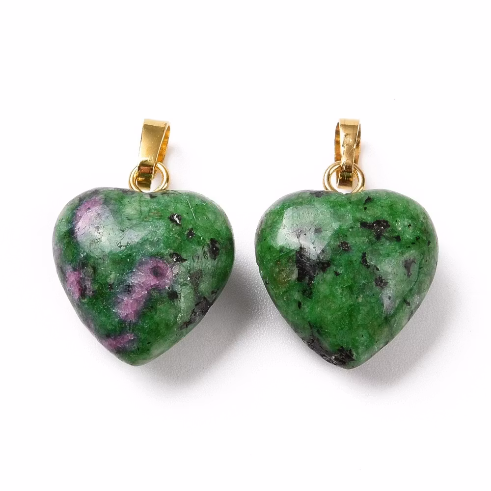 Guldfärgat hänge hjärta ruby zoizite, 1 st