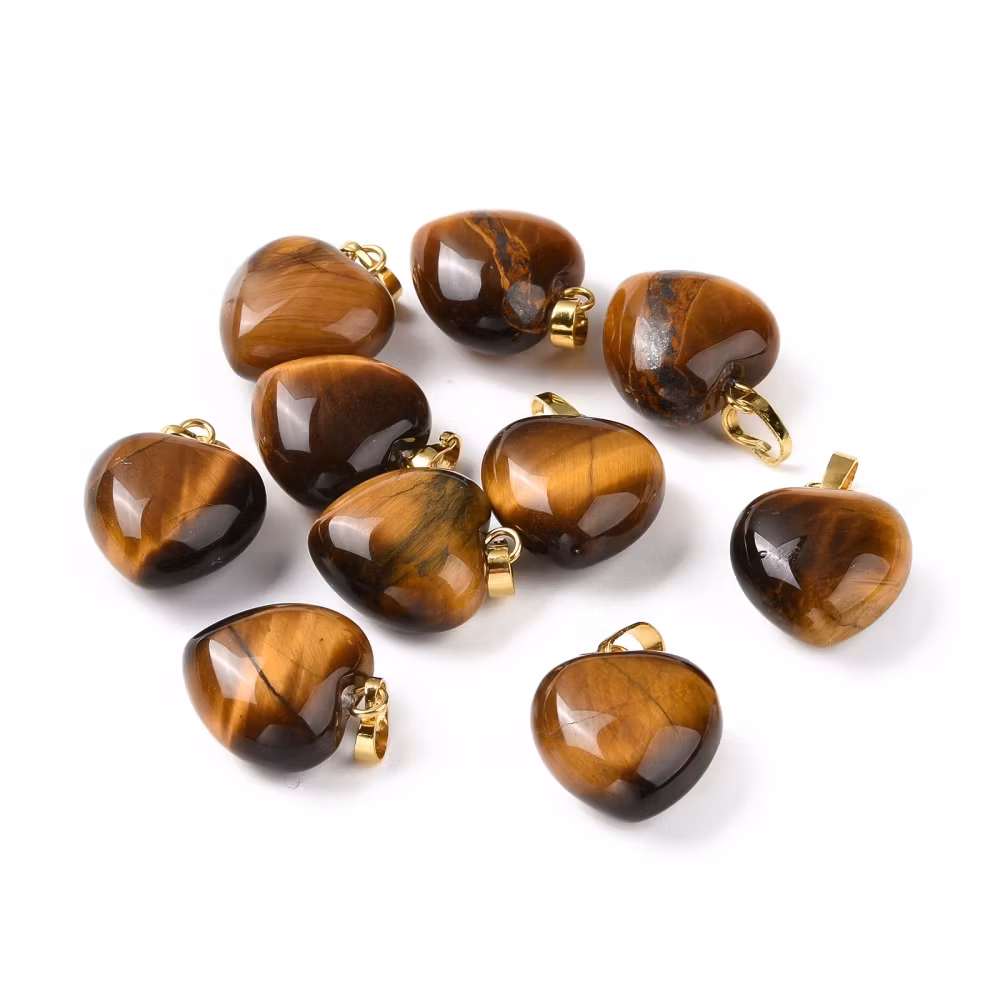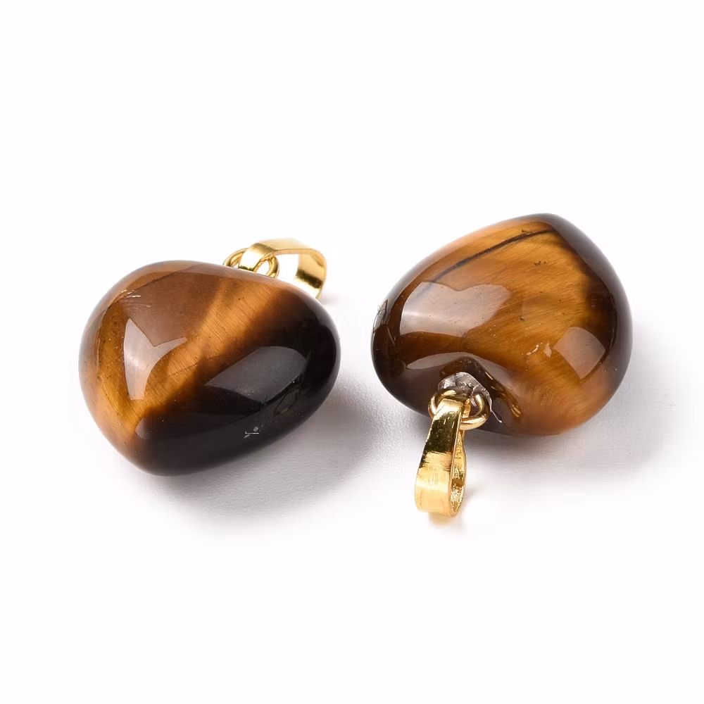 Guldfärgat hänge hjärta tigeröga, 1 st