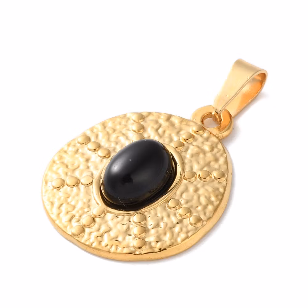Guldfärgat rostfritt stål hänge onyx med PVD plätering, 1 st