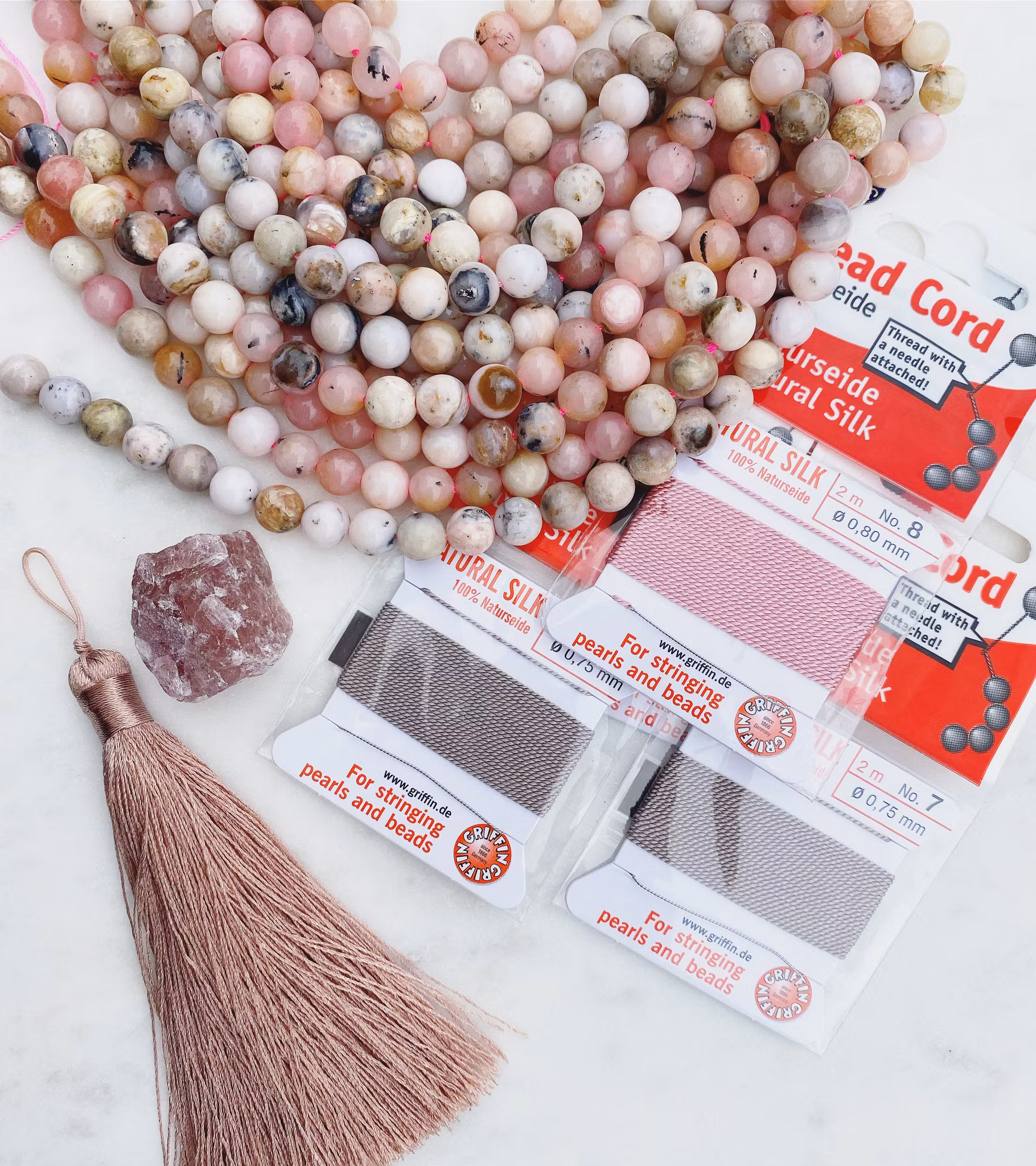 Alla halvädelstenar har olika borrade hål så man får prova sig fram till lämpligaste tråd.