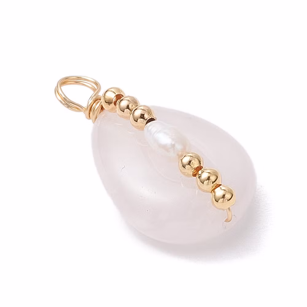 Guldfärgad berlock rosenkvarts och sötvatten, 1st