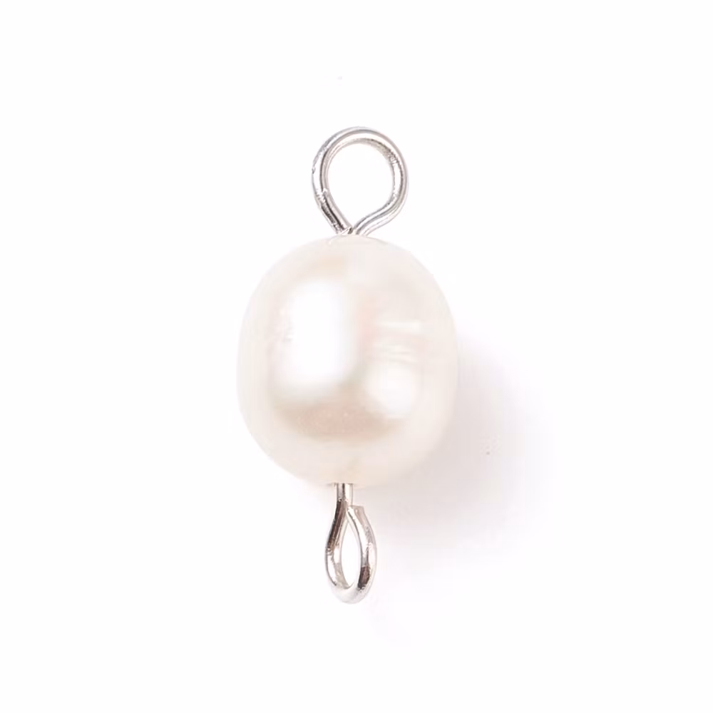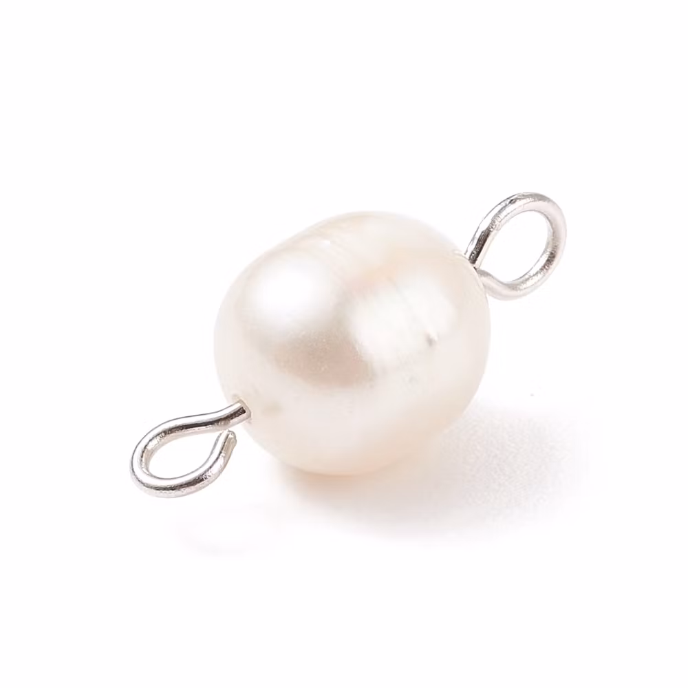 Connector i rostfritt stål 304. Mått ca 18~18.5x8~9 mm. Alla pärlorna är olika till form och ojämnheter förekommer.