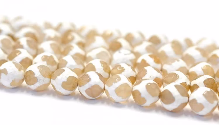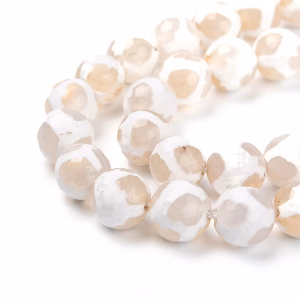 Tibetansk halvädelsten Dzi vit 8 mm, 1 sträng
