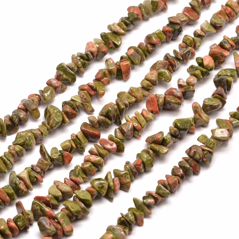 1 sträng naturlig chips, ca 60 cm. Mått ca 5~8x5~8 mm, hål 1 mm. Stenarna kan vara något ojämna och färgskiftningar kan förekomma.