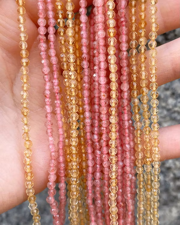 Facetterad jordgubbskvarts 2 mm, 1 sträng