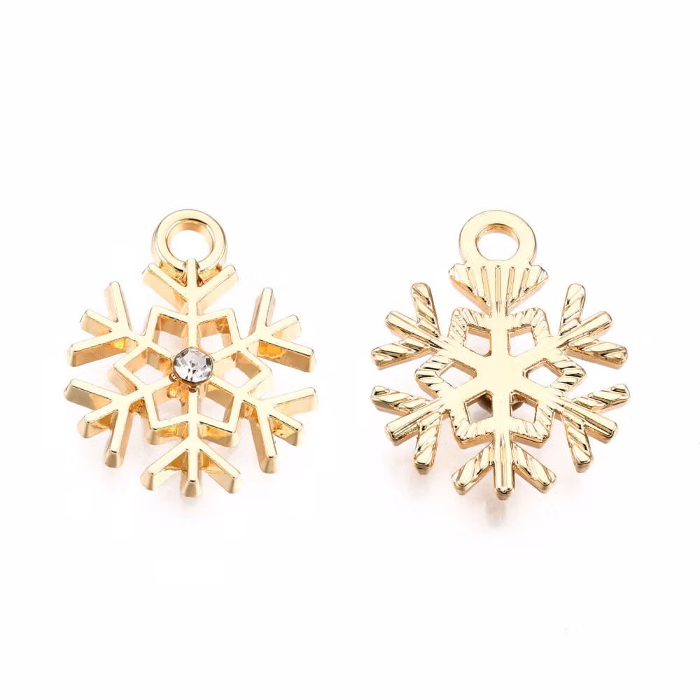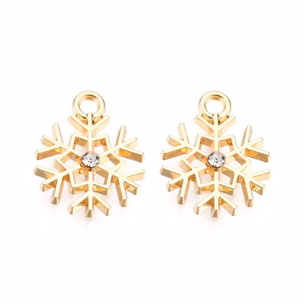 Guldfärgad berlock snöflinga med strass, 10 st