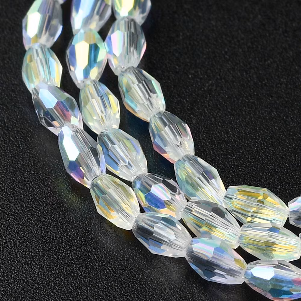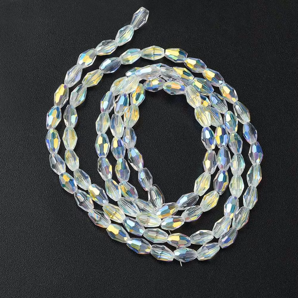 Facetterade glaspärlor AB risformade 6 mm, 1 sträng