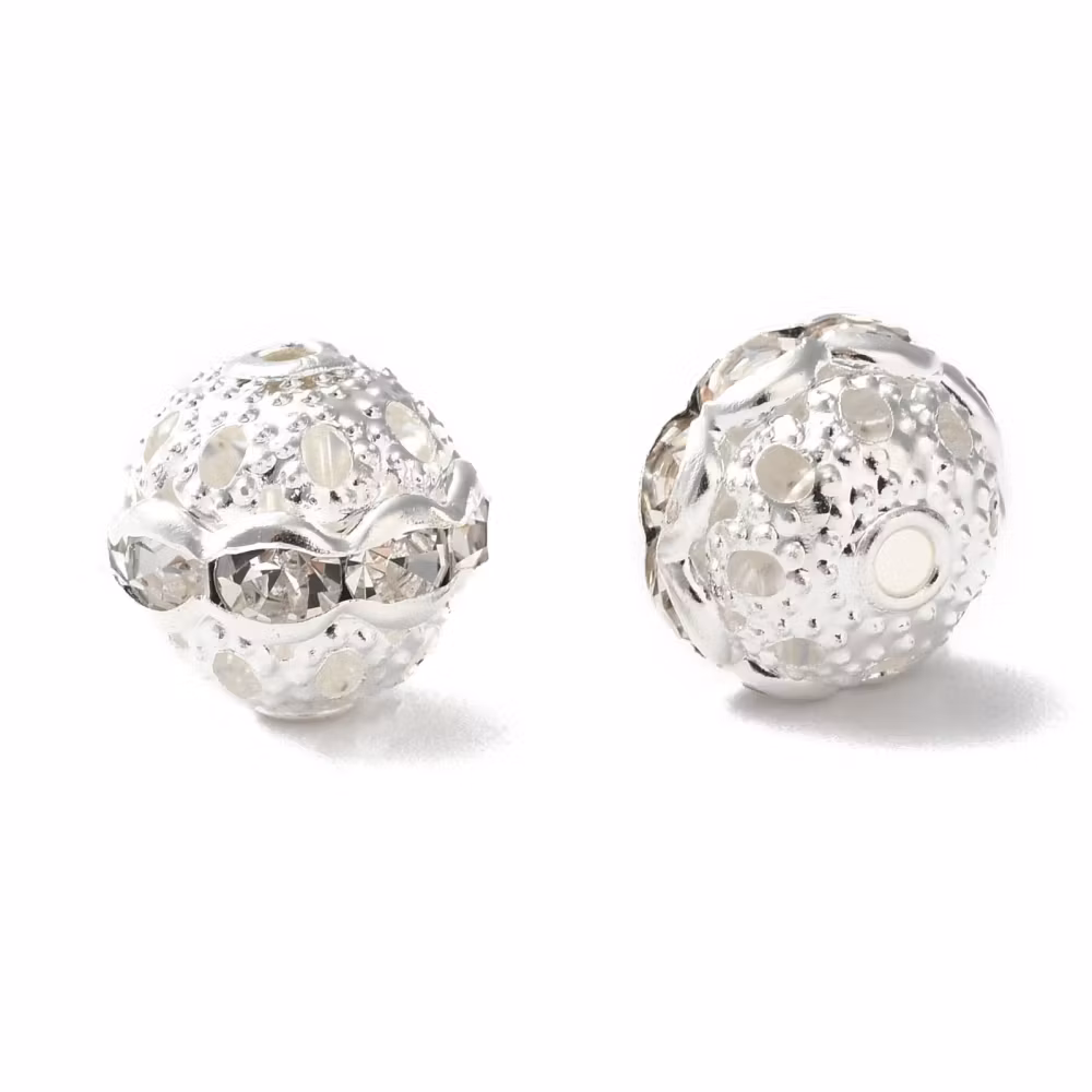 Silverfärgad metallpärla filigran med strass 10 mm, 1 st