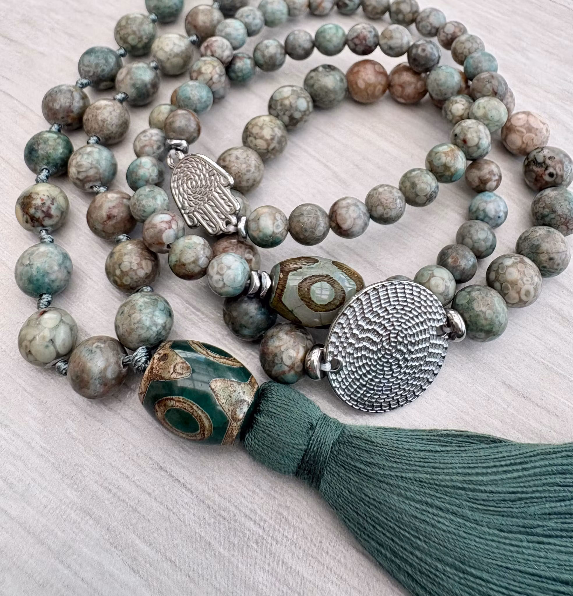 Maifan stone grönmelerad 8 mm, 1 sträng