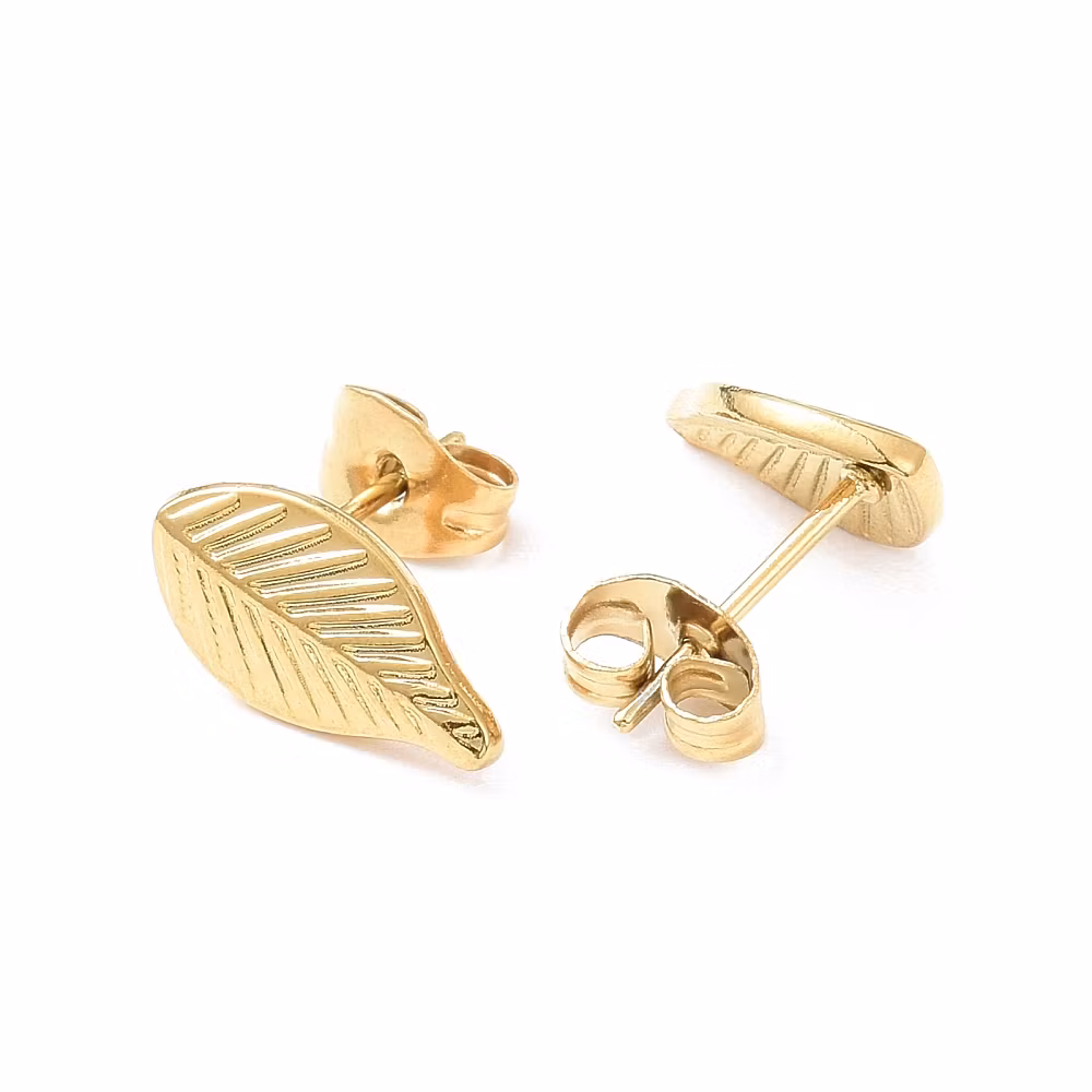 Guldfärgat rostfritt stål örhängen löv med PVD plätering, 1 par