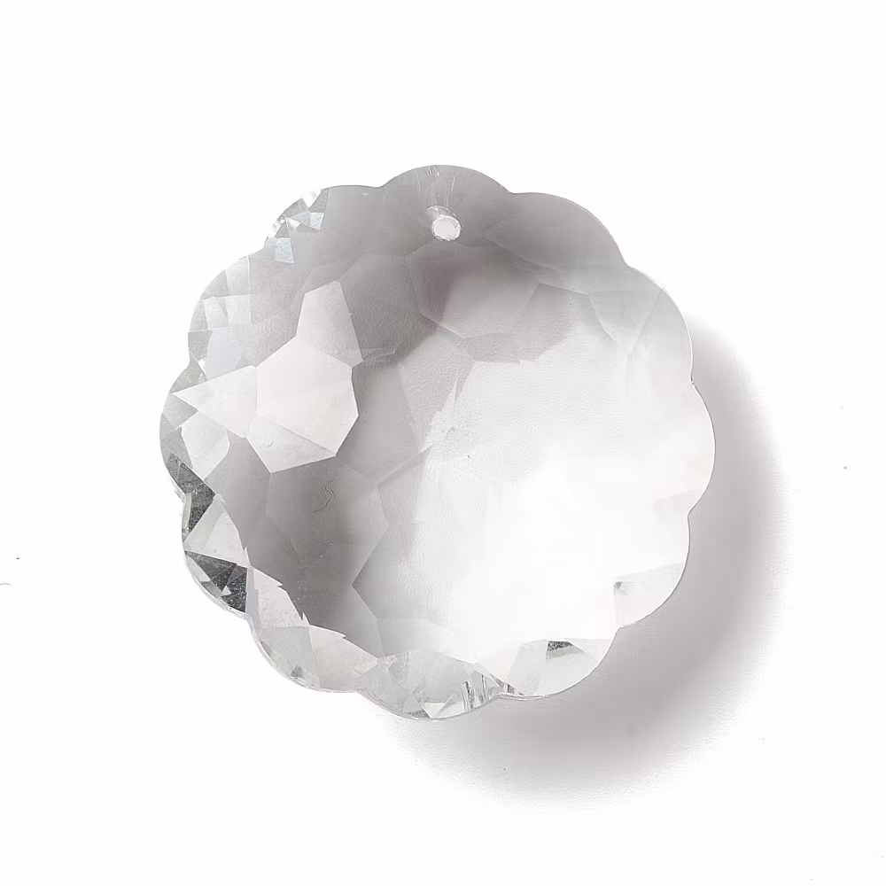 Hänge av facetterat glas. Mått 45x44x20mm, hål 2mm.