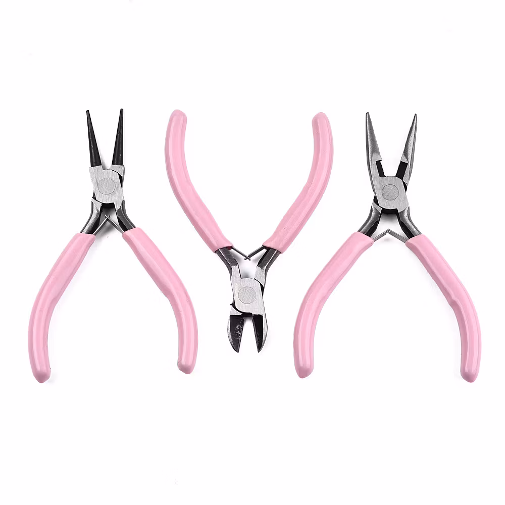 Set med tre verktyg för din smyckestillverkning: 1 avbitare, 1 böjd/rak plattång, 1 rundtång. Alla tänger har måtten ca 113~126x48~52x6~10mm.