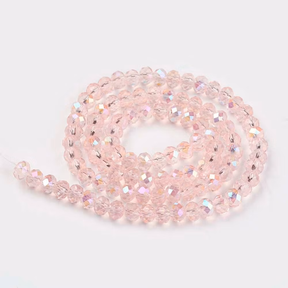 Facetterade abacus 4x3 mm ljusrosa AB, 1 sträng
