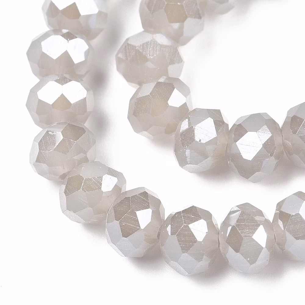 Facetterade abacus 6x4 mm ljusgrå glittriga, 1 sträng