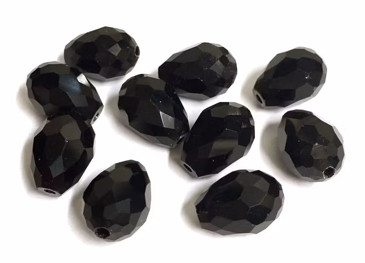Facetterade glasdroppar svarta 15 mm, 10 st