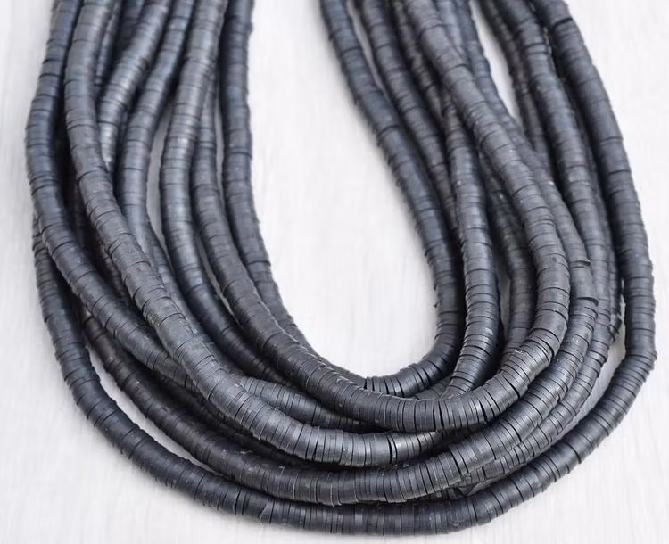Heishi pärlor svart, 1 sträng