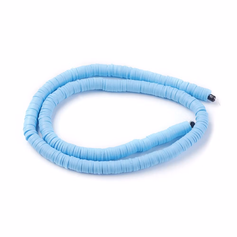 Heishi pärlor, rondeller av polymerlera. Mått: ca 6x0.5-1mm. Hål: ca 2 mm.