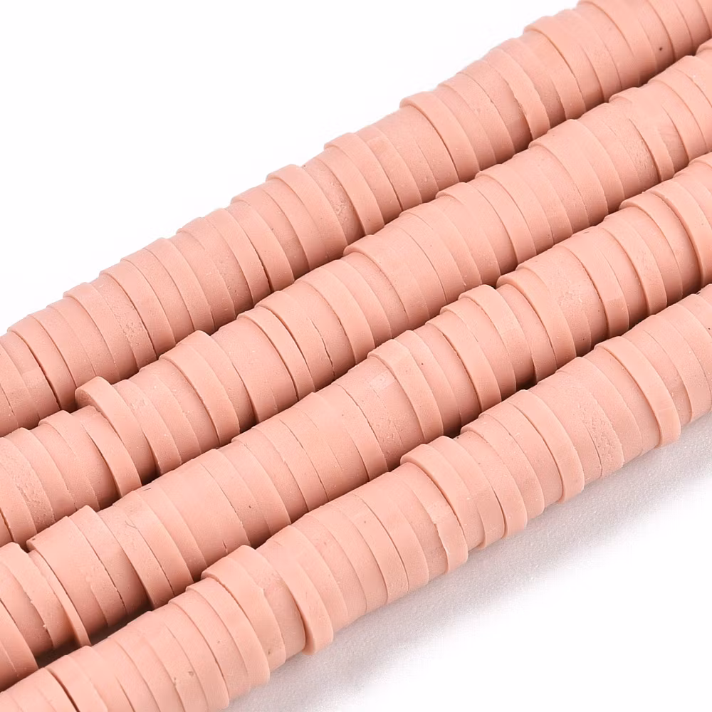 Heishi pärlor, rondeller av polymerlera. Mått: ca 6x0.5-1mm. Hål: ca 2 mm.