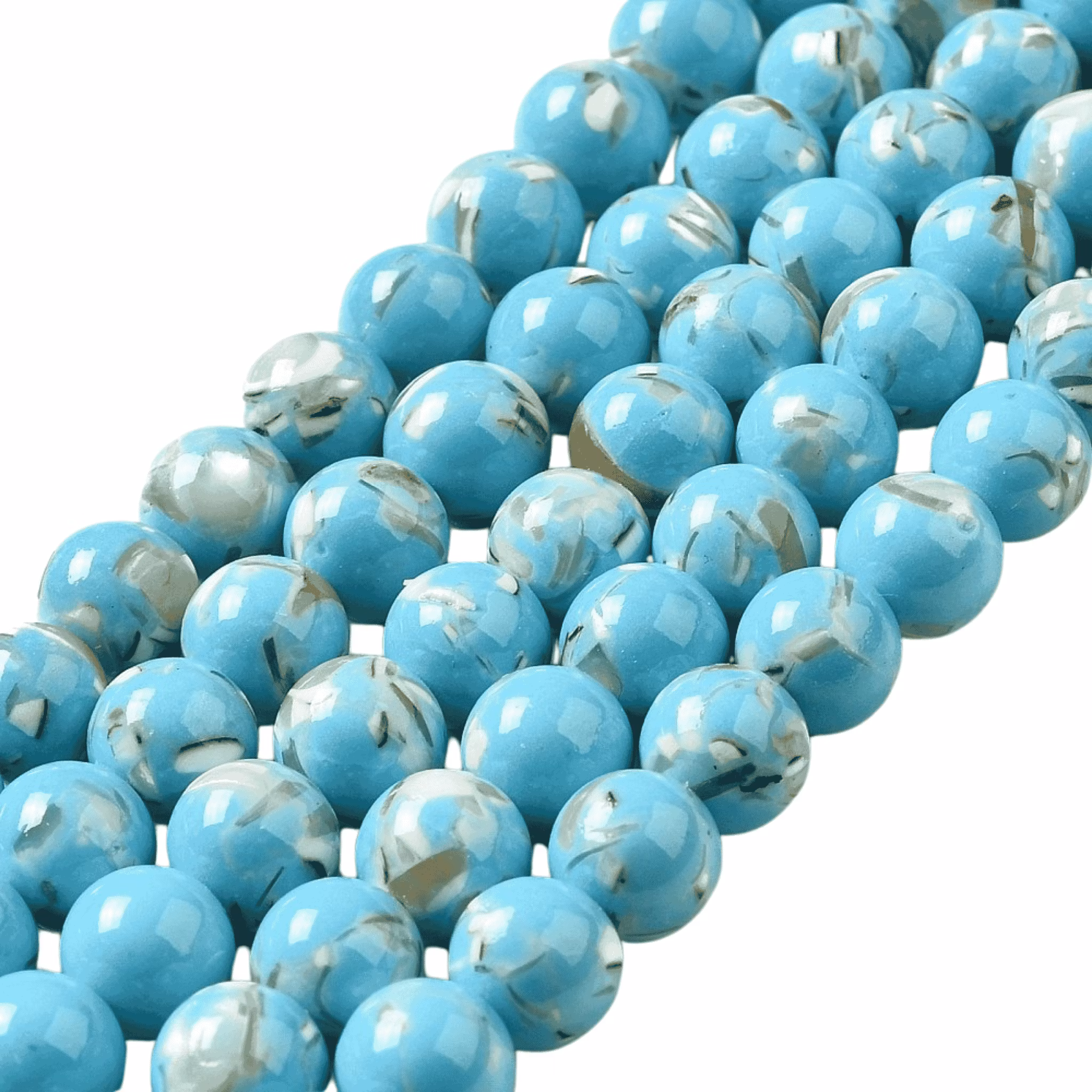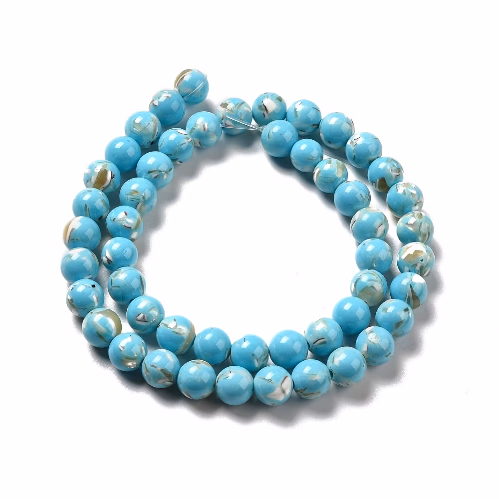 Snäckskalspärlor runda turkosa 6 mm, 1 sträng