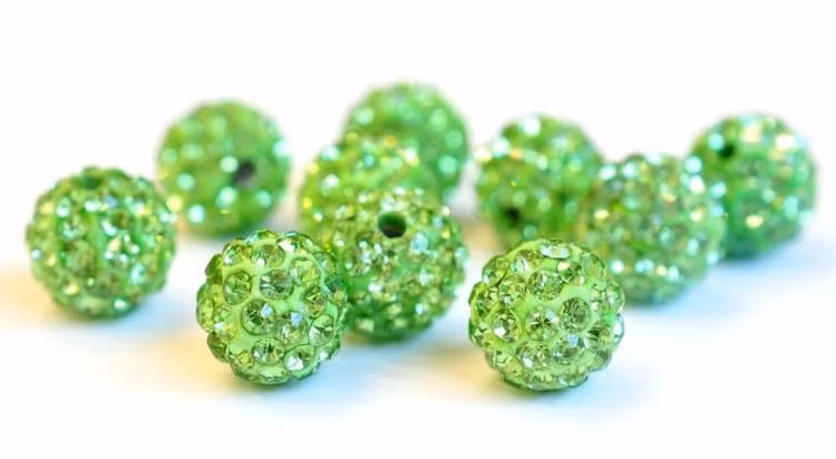 Strasspärla av polymerlera. Hål ca 0.8 mm.