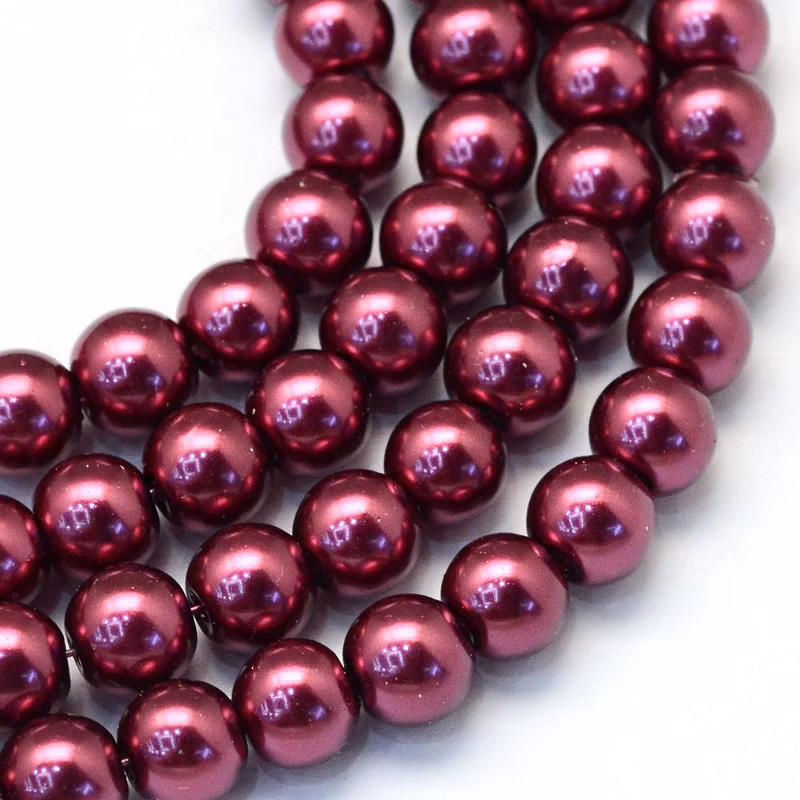 Vaxade glaspärlor 6 mm vinröda, 1 sträng