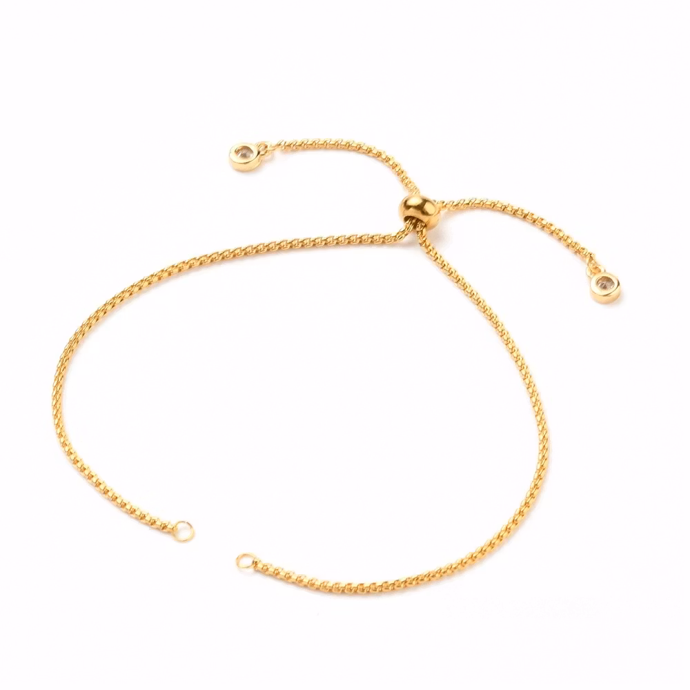Armbandslänk med slider av rostfritt stål 304. Kedjan är ca 1.4 mm. Berlockera är av cubic zirconia. Ringarna är öppningsbara och enkla att fästa på tex en connector. Använd plattång för att öppna och stänga ringarna.