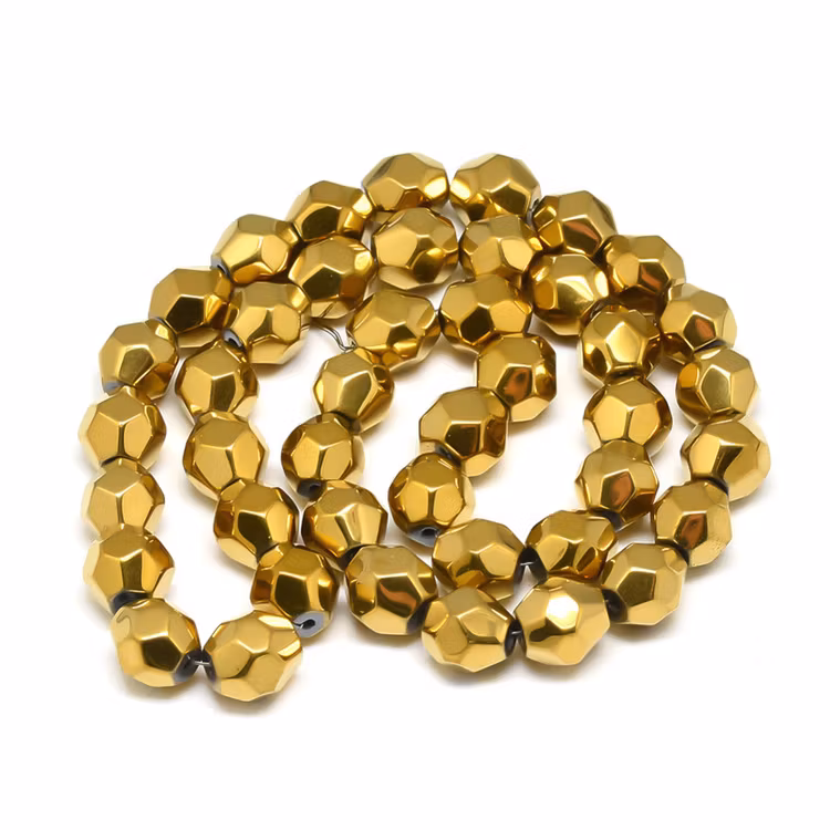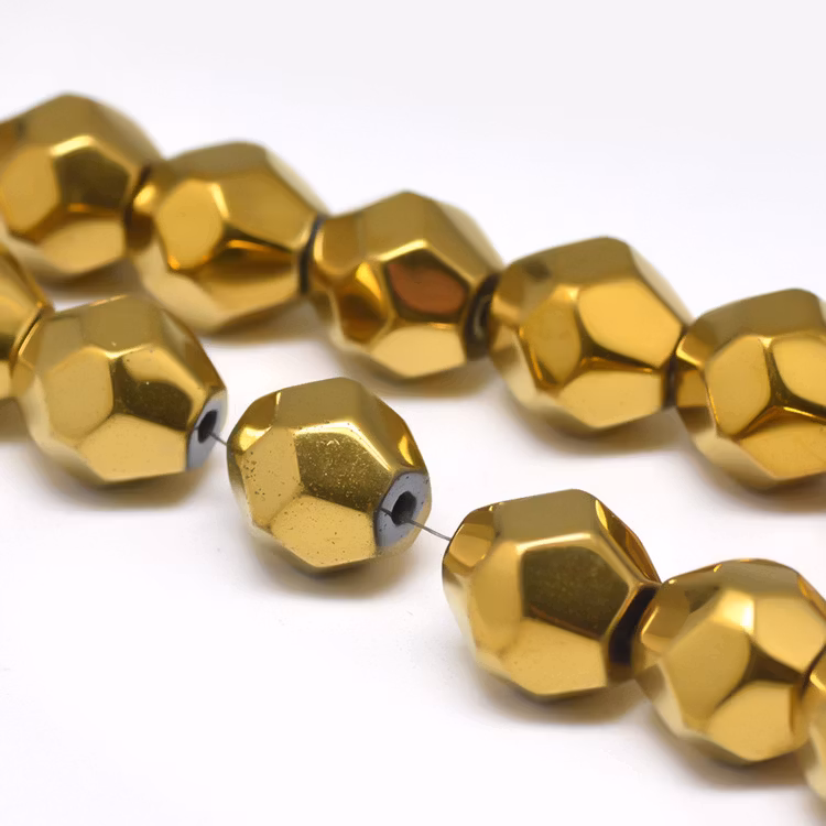 10 st facetterade hematitpärlor. Pärlans hål är ca 0.8 mm. Ej magnetiska. Mått: 9x10x9mm, Hål: 1mm