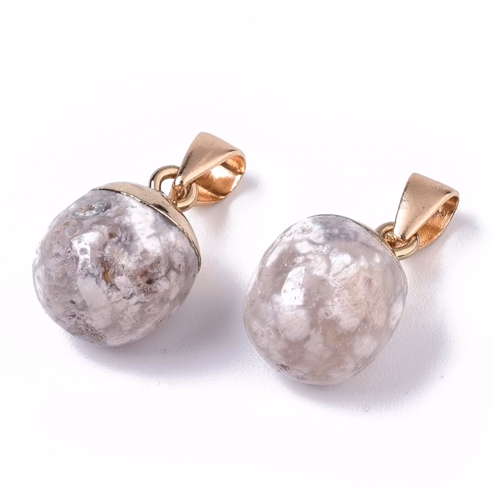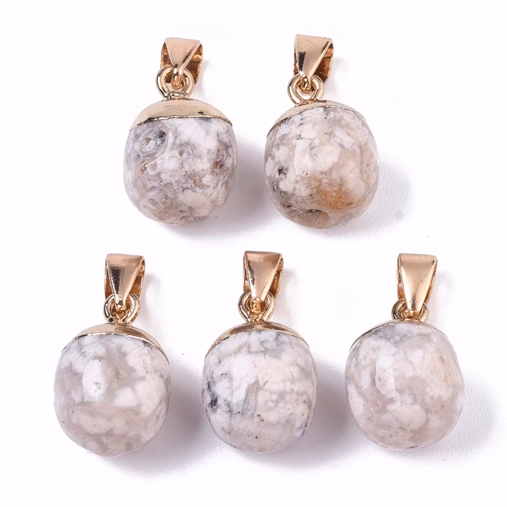 1 hänge av nickelfri metall och halvädelsten. Mått ca 17~19x11.5~12.5mm. Stenarna är något ojämna och färgskiftningar kan förekomma.