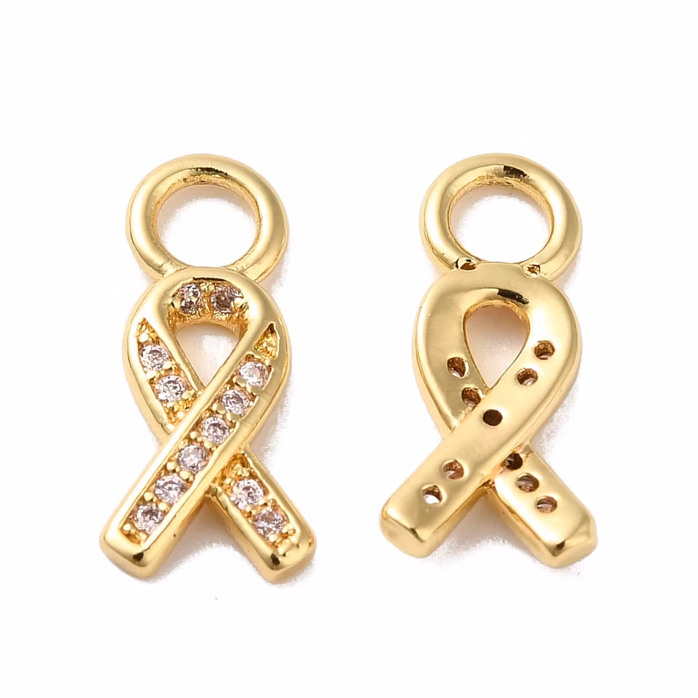 Guldfärgad berlock cubic zirconia liten rosa bandet, 1 st