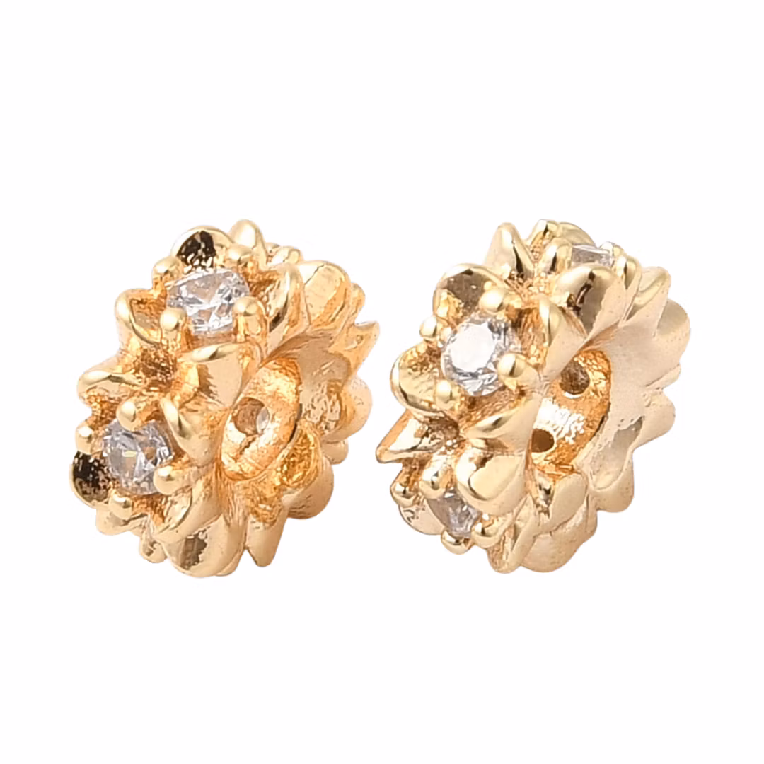 Guldfärgad strassrondell 8 mm med blommor och cubic zirconia, 1 st