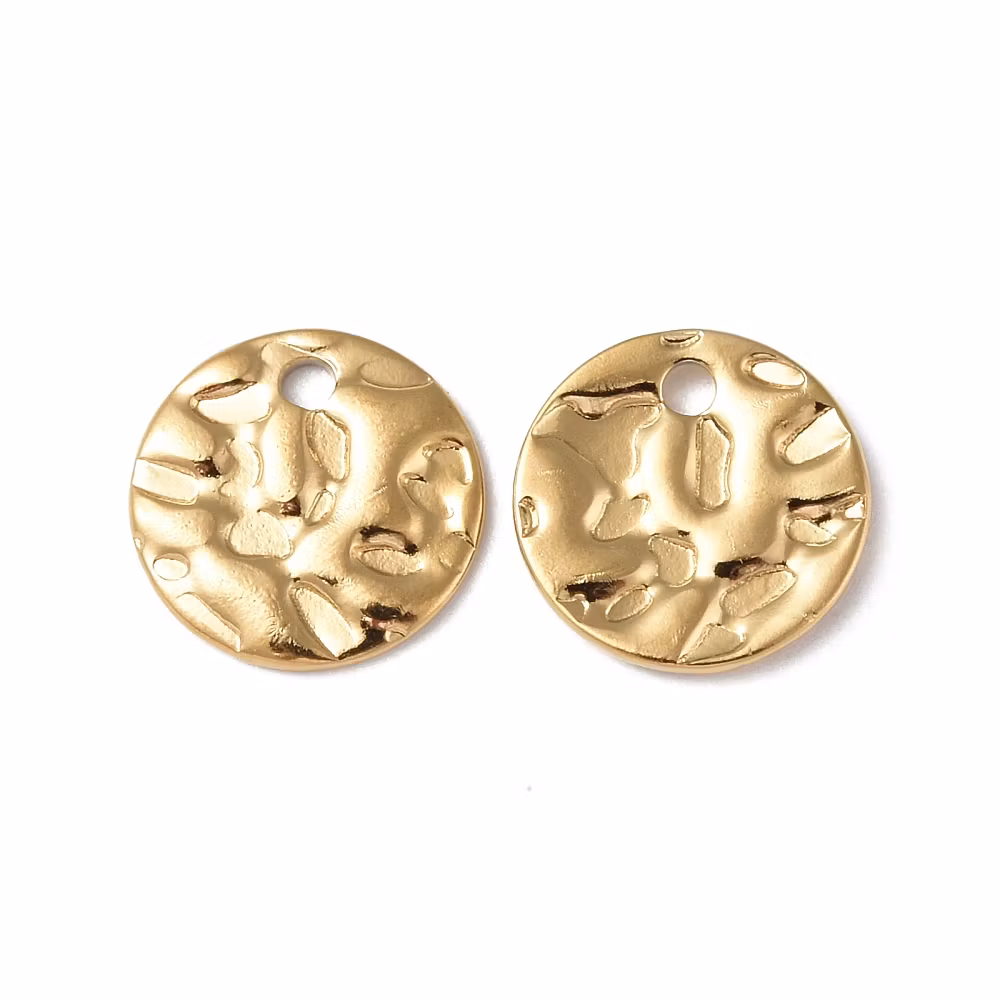 Guldfärgat rostfritt stål berlock rund och hamrad, 1 st