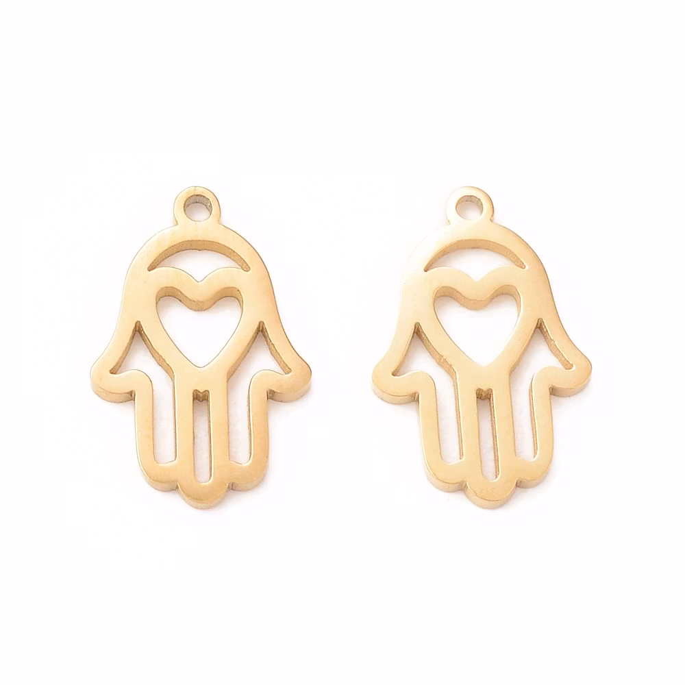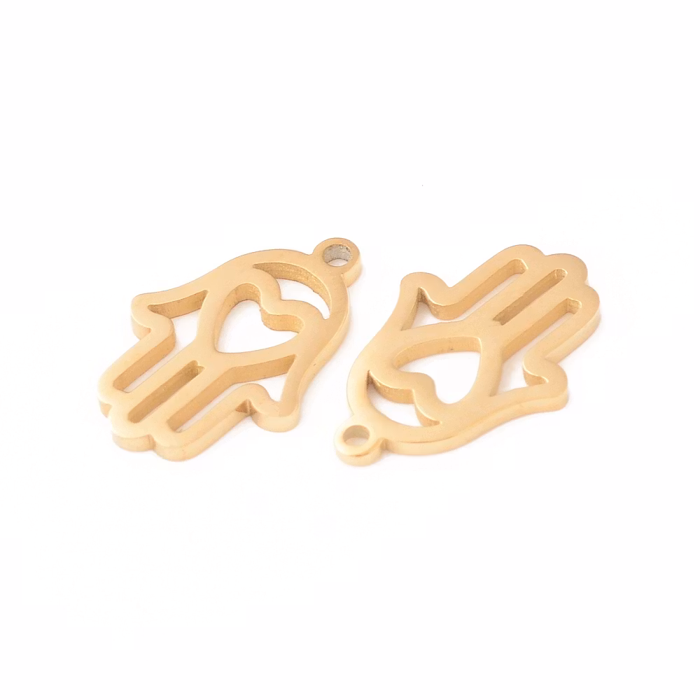 Guldfärgat rostfritt stål berlock hamsa, 1 st