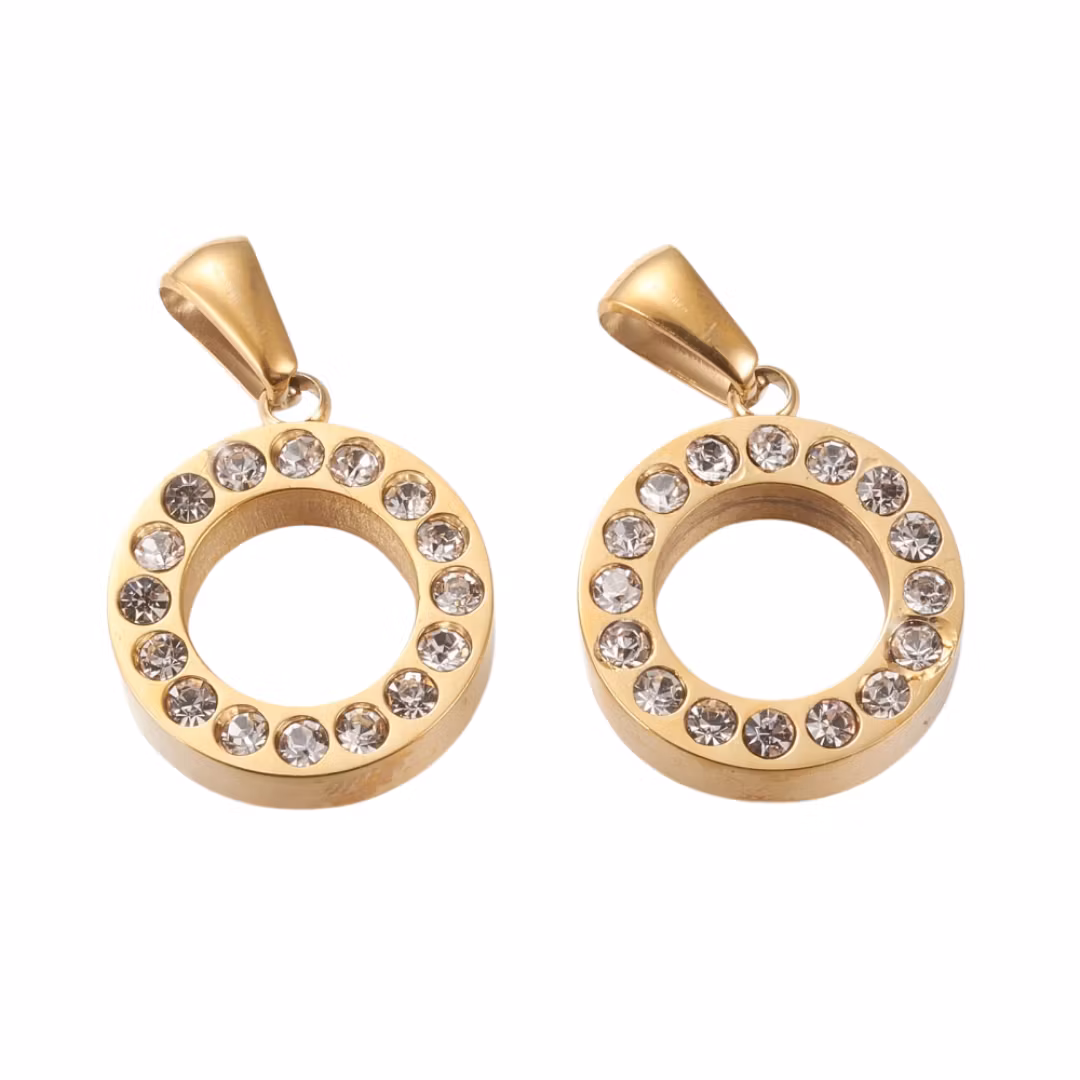 Guldfärgat rostfritt stål hänge med strass med PVD plätering, 1 st