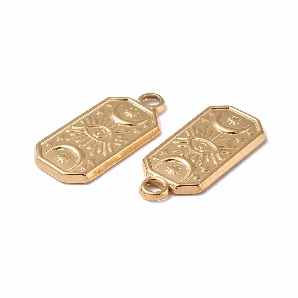Guldfärgat rostfritt stål hänge moon & eye med PVD plätering, 1 st