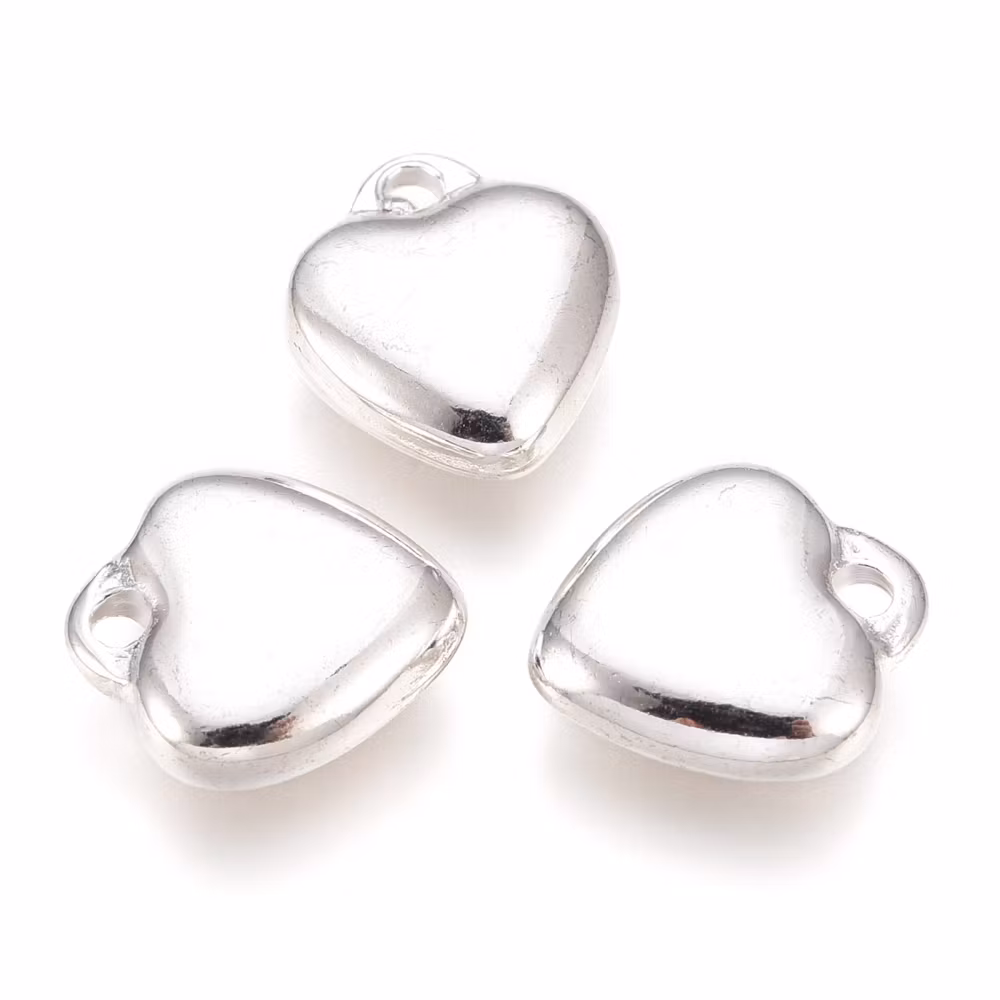 Silverfärgat rostfritt stål berlock hjärta, 1 st