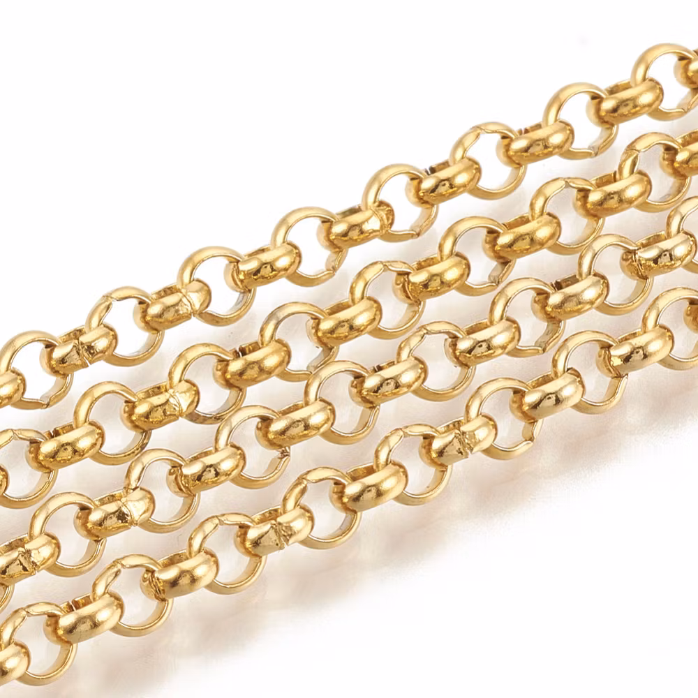 Guldfärgat rostfritt stål ärtlänk 4 mm med PVD plätering, 5 m