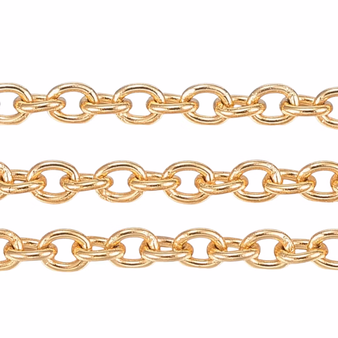 Guldfärgat kirurgiskt stål kedja 2.5x2 mm med PVD plätering, 5 m