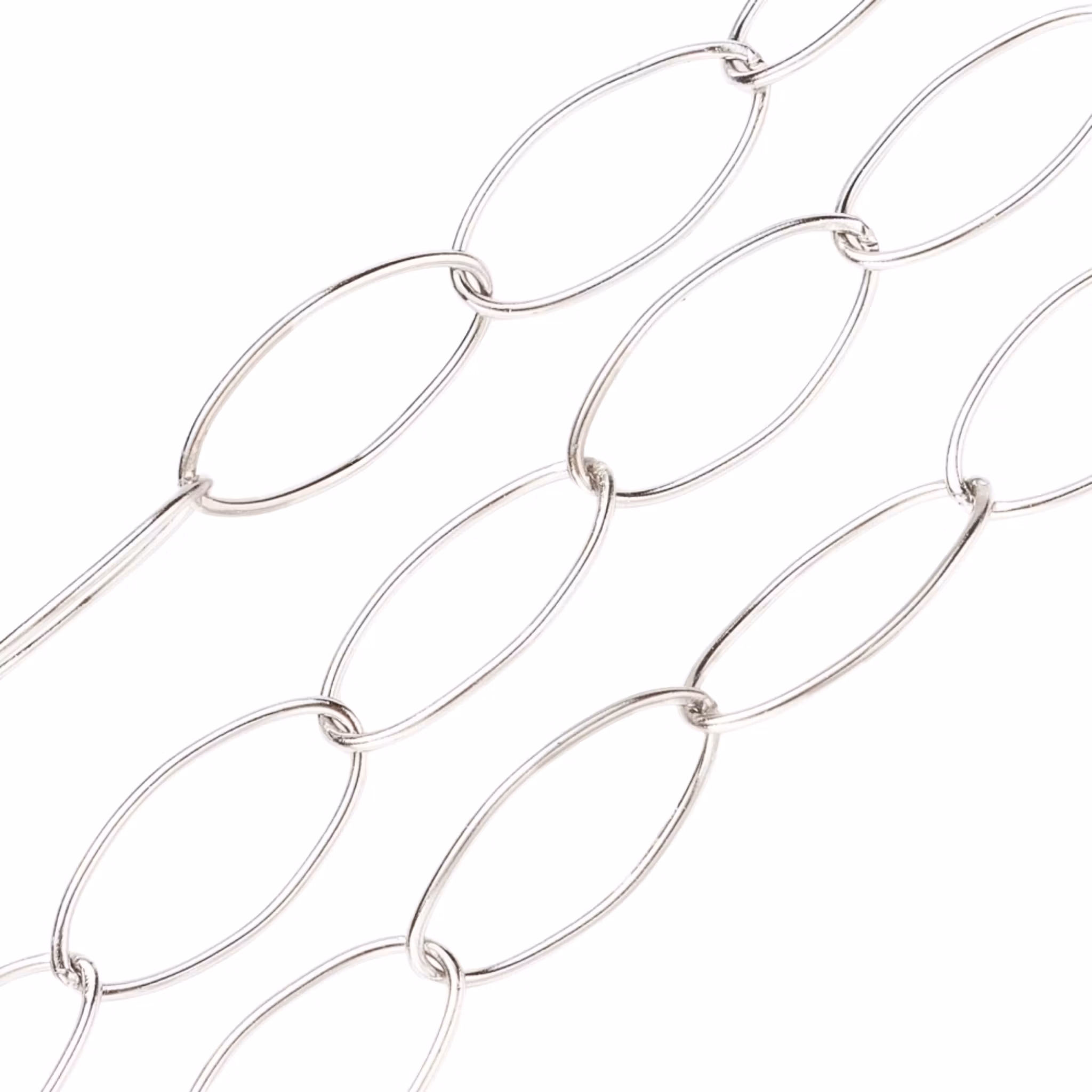 Kedja av rostfritt stål 304 med lödda ringar. Nickelfri. Mått: ca 20x20 mm. Kedjan är kapad i 1-meters bitar men är lätt att länka ihop.