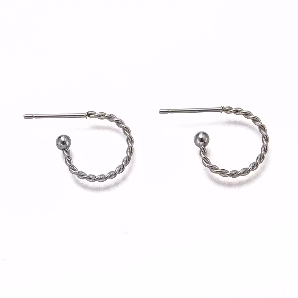 Kirurgiskt stål twistade creoler med liten kula och 18k plätering, 10 st