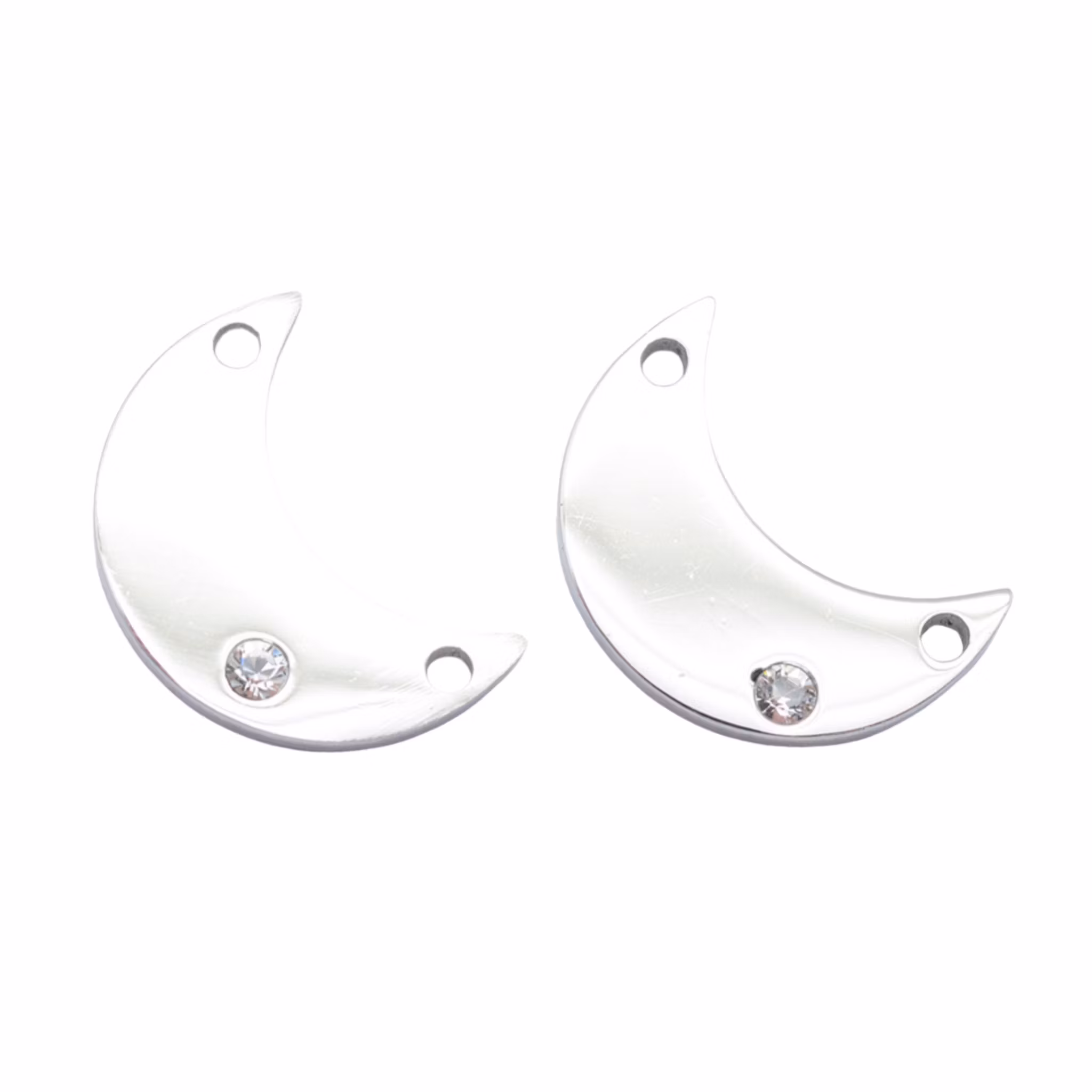 Connector av kirurgiskt stål 316L och cubic zirconia. Mått 15x10.5x2mm.