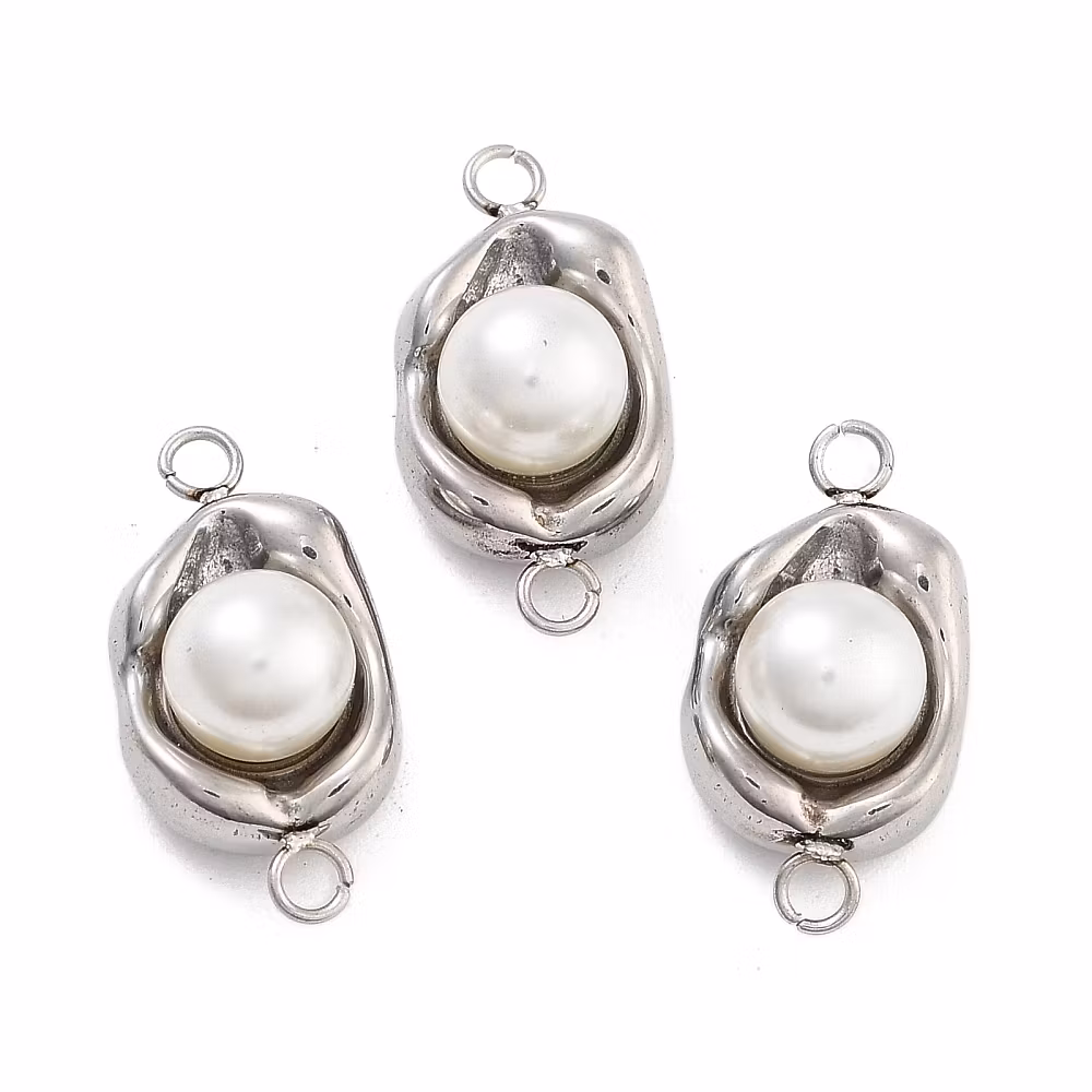 Connector i rostfritt stål 304 och med pärla av acryl, nickelfri. Mått: ca 16.5x8.5x7mm.