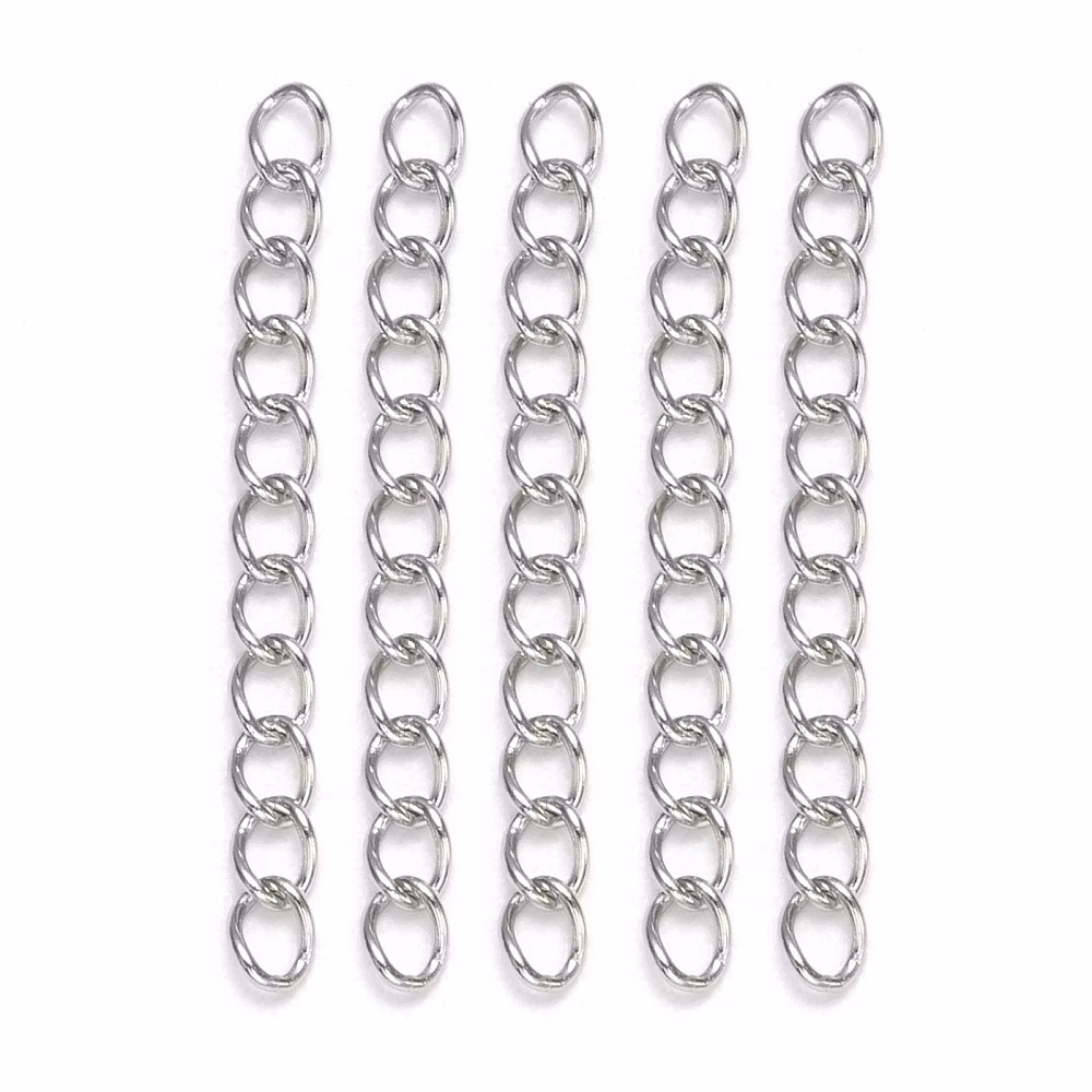 Förlängningskedjor av rostfritt stål 304. Längd ca 5 cm, bredd ca 3 mm.