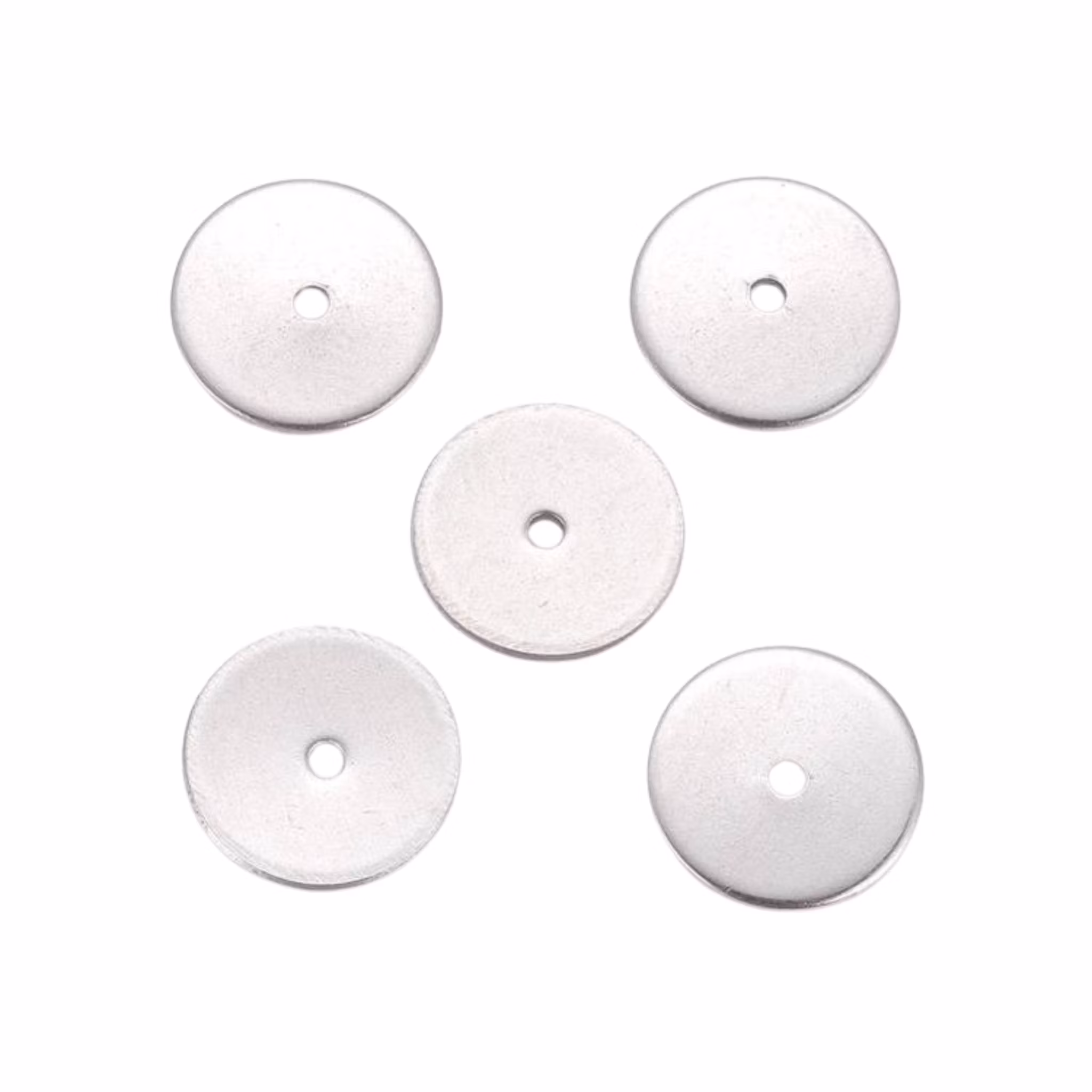 Rondeller av rostfritt stål 304. Nickelfria. Hål 1 mm, 0.7 mm tjocka.