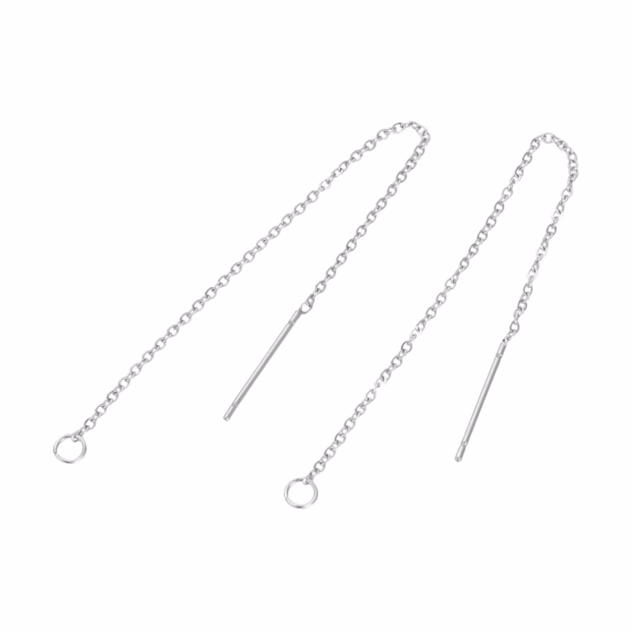 Kedjeörhängen med ögla av rostfritt stål 304. Längd ca 90 mm. Tänk på att metall missfärgas när den kommer i kontakt med fukt, vatten, parfym, cremer och svett. Detta är helt naturligt, metallen mörknar och får patina vilket gör smycket unikt. Även sol och hög luftfuktighet kan förändra metallens färg. Duscha eller bada aldrig med dina smycken. Förvara dina smycken mörkt och svalt.
