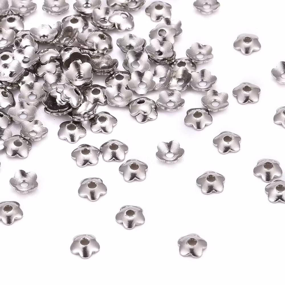Kirurgiskt stål pärlhattar blomma 4 mm, ca 100 st