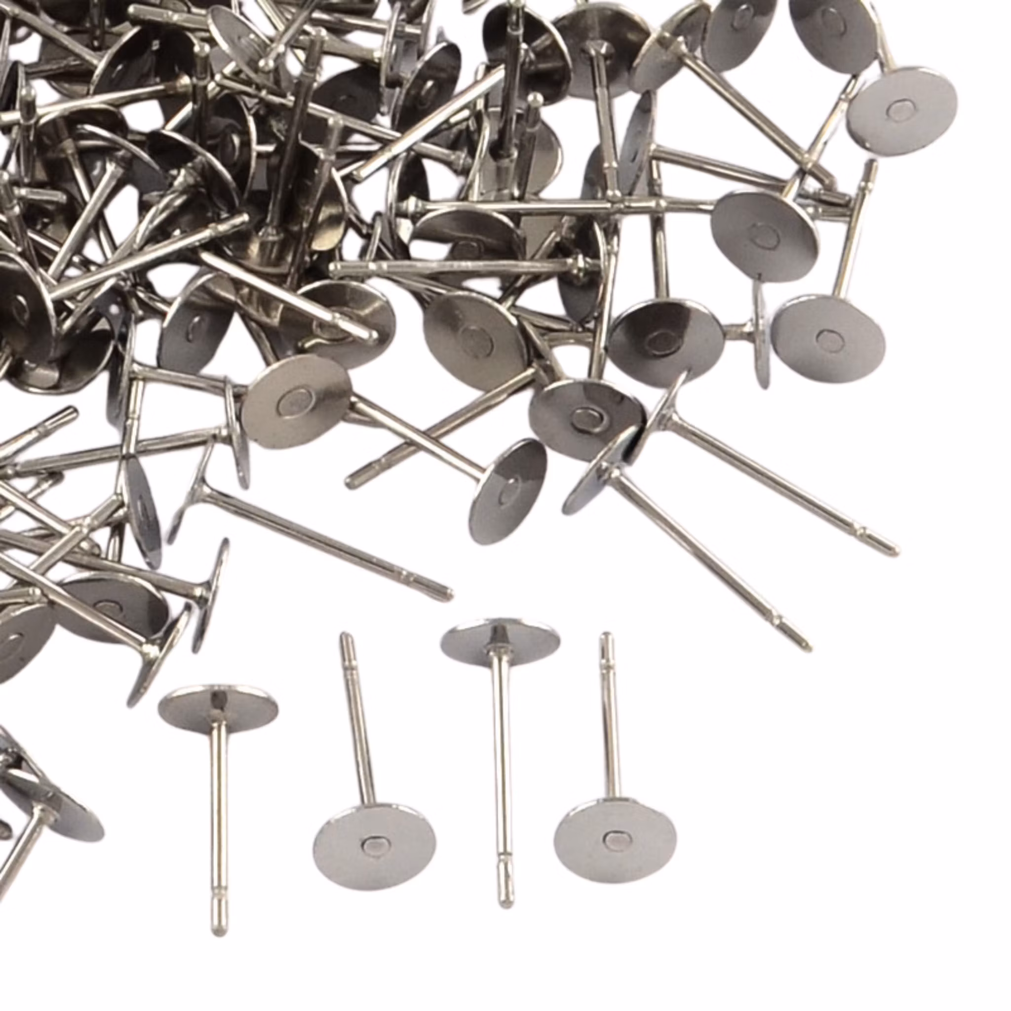 Kirurgisk stål stiftörhängen med platta för limning, 50 st