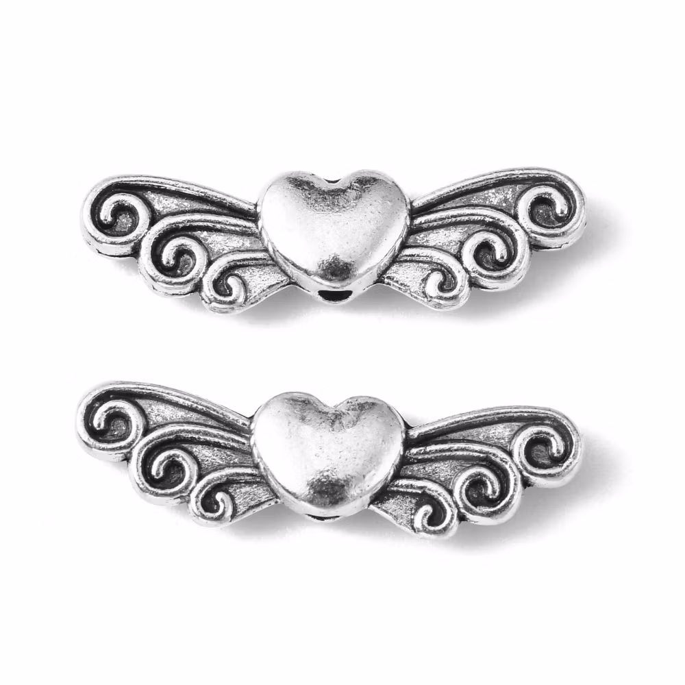 REA: Antikfärgade änglavingar sirliga med hjärtan, 10 st